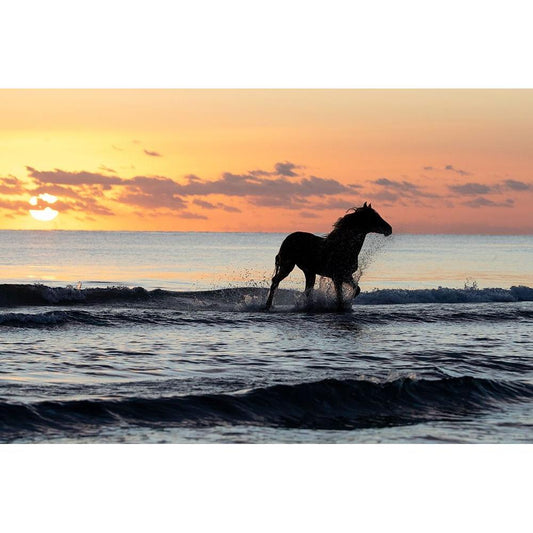 Sunset Horse on the Beach White Modern Wood Framed Art Print by Walker, Carol