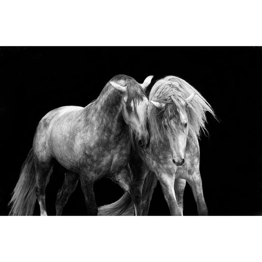 Black And White Horses in the Wild White Modern Wood Framed Art Print by Walker, Carol