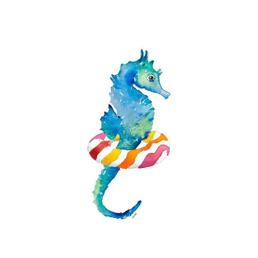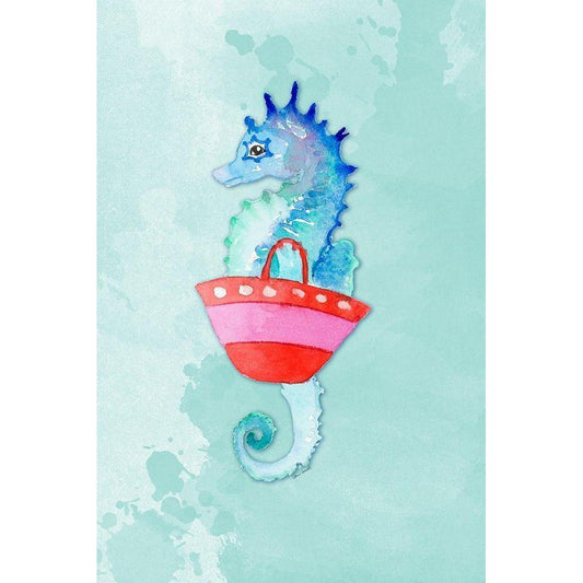 Seahorse With Bag on Watercolor (blue) White Modern Wood Framed Art Print by Loreth, Lanie
