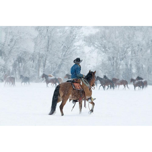 Wrangler In The Snow White Modern Wood Framed Art Print by Walker, Carol