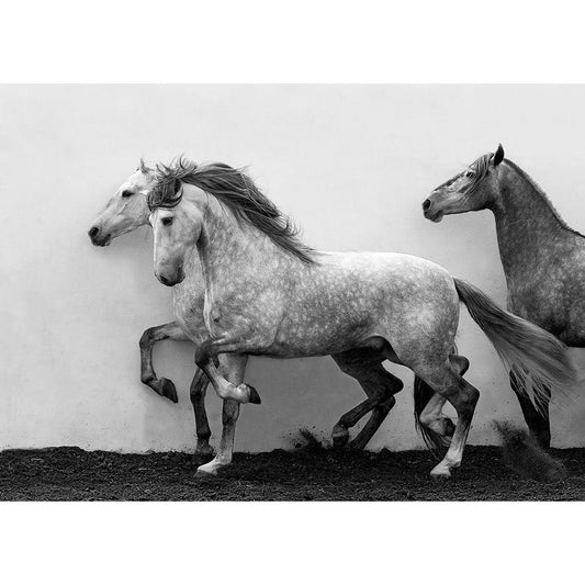 Horses On The Run White Modern Wood Framed Art Print by Walker, Carol