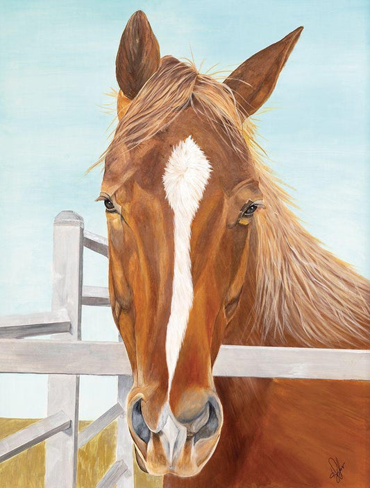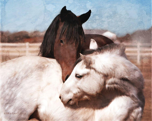 White and Chestnut Horses White Modern Wood Framed Art Print with Double Matting by Bluebird Barn