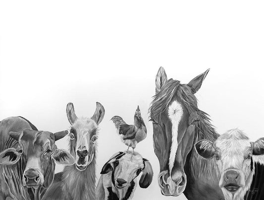 Farm Crew White Modern Wood Framed Art Print with Double Matting by Fifer, Diane