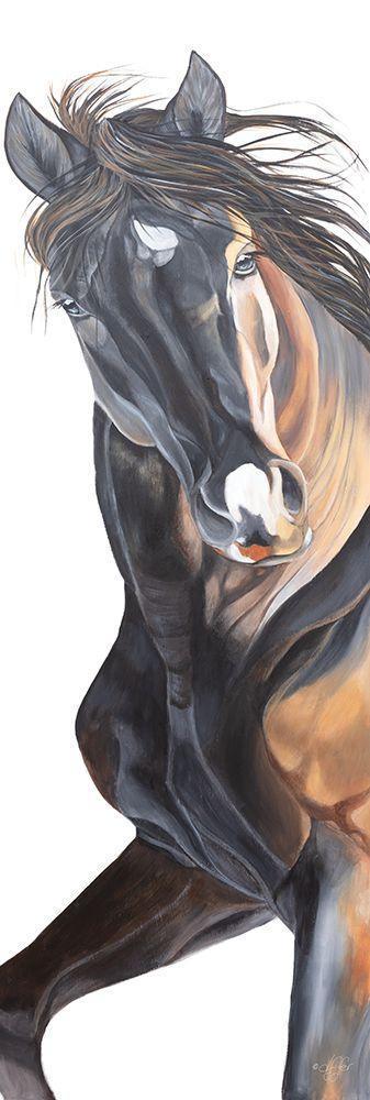 Textured Dark Running Horse White Modern Wood Framed Art Print with Double Matting by Bluebird Barn