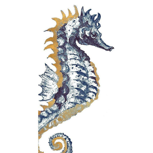 Surf Side Golden Blue Seahorse White Modern Wood Framed Art Print by Pinto, Patricia