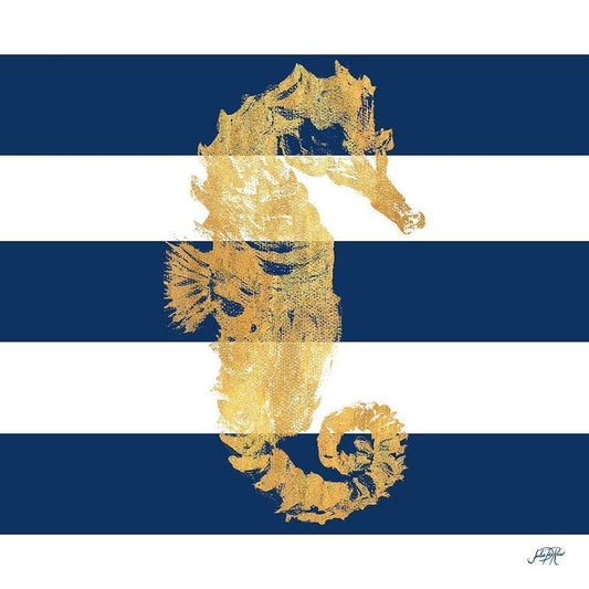 Gold Seahorse on Stripes I White Modern Wood Framed Art Print by DeRice, Julie