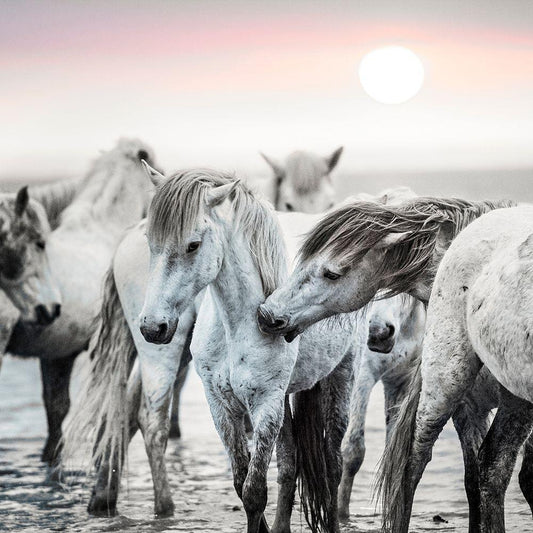 Wild Horses White Modern Wood Framed Art Print by 1x