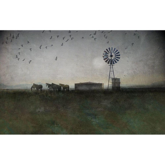 Horse and Crows White Modern Wood Framed Art Print by Vest, Chris