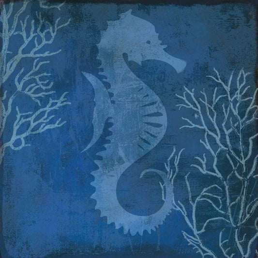 Navy Sea horse White Modern Wood Framed Art Print by PI Studio