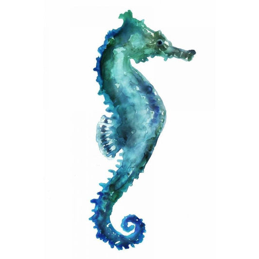 Blue Sea Horse White Modern Wood Framed Art Print by Watts, Eva