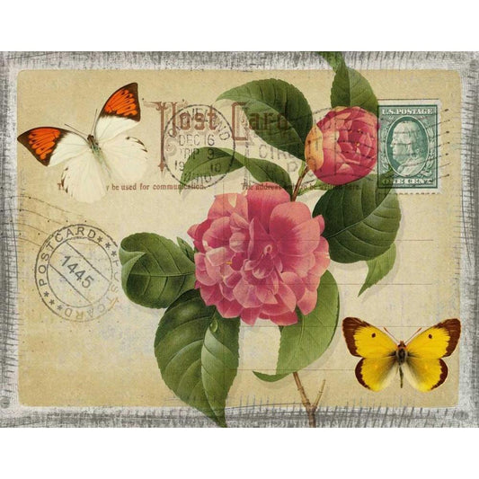 VINTAGE BUTTERFLY POSTCARD I White Modern Wood Framed Art Print by Greene, Taylor