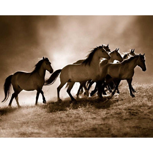 Running Horses White Modern Wood Framed Art Print by Nagler, Monte