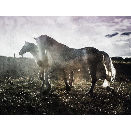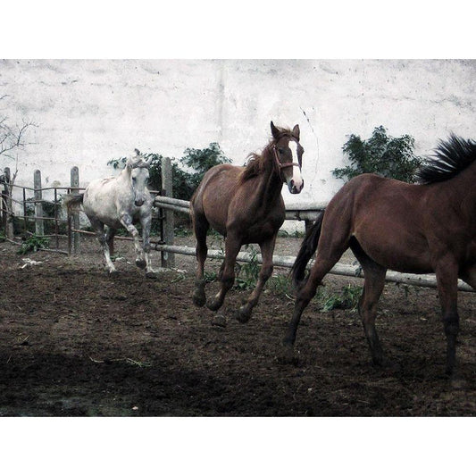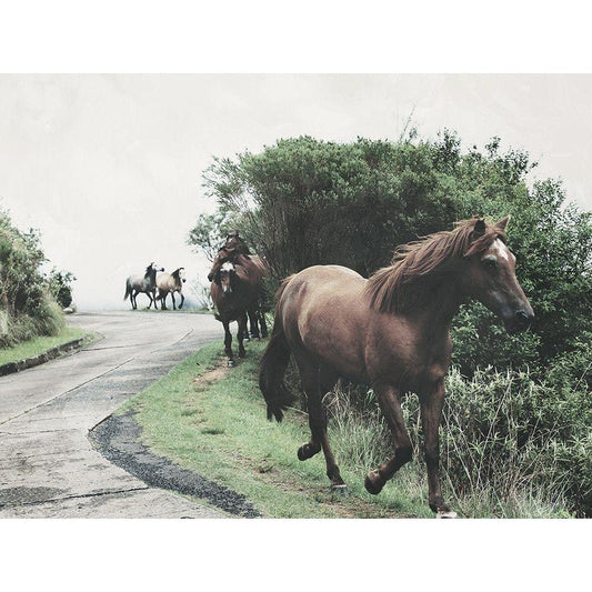 Horses Down The Dirt Road White Modern Wood Framed Art Print by Villa, Milli