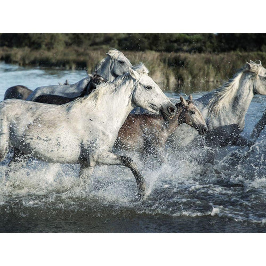Horses In The Sea White Modern Wood Framed Art Print by Villa, Mlli