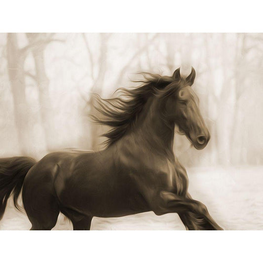 Horse In The Wind White Modern Wood Framed Art Print by Villa, Milli