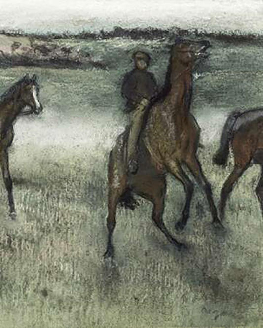 Race Horses (center) White Modern Wood Framed Art Print with Double Matting by Degas, Edgar