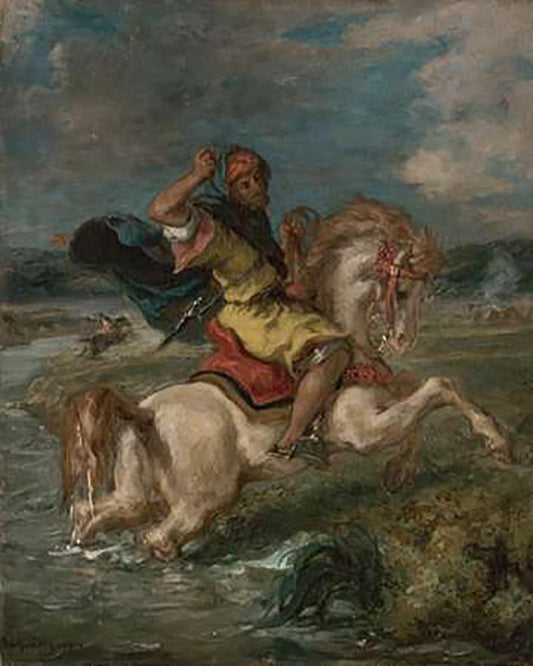 Moroccan Horseman Crossing a Ford White Modern Wood Framed Art Print with Double Matting by Delacroix, Eugene