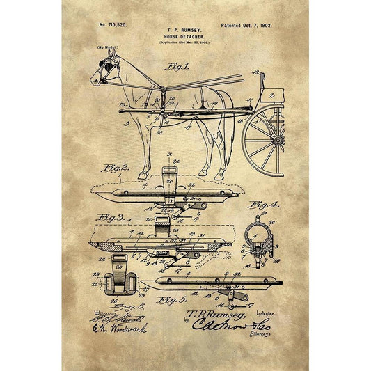 Horse Detacher Blueprint - Industrial Farmhouse White Modern Wood Framed Art Print by Lavoie, Tina