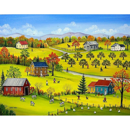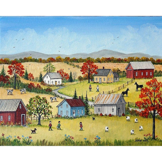 Farm Kids in the Fall White Modern Wood Framed Art Print by Mark, Sharon