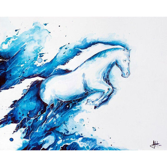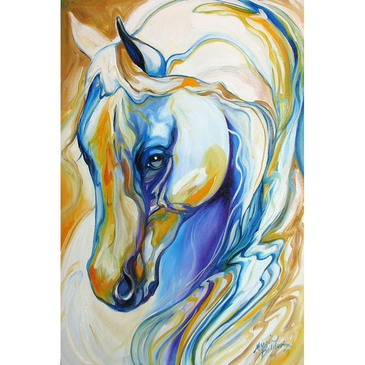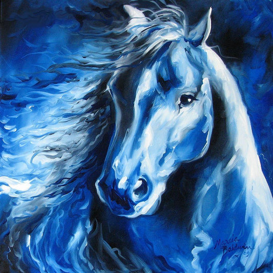 Blue Thunder War Pony White Modern Wood Framed Art Print by Baldwin, Marcia