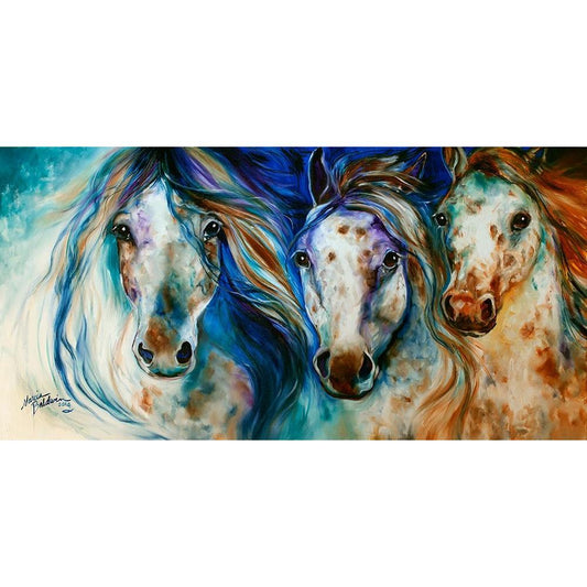 3 Wild Appaloosa Horses White Modern Wood Framed Art Print by Baldwin, Marcia