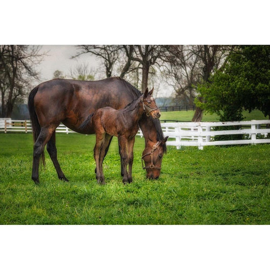 Mare And Foal Together White Modern Wood Framed Art Print by Galloimages Online