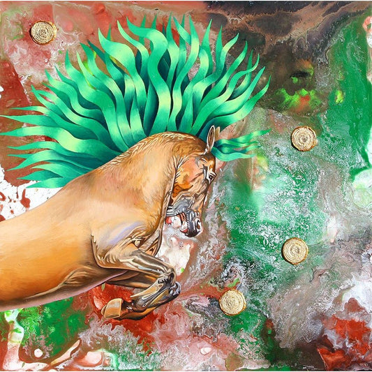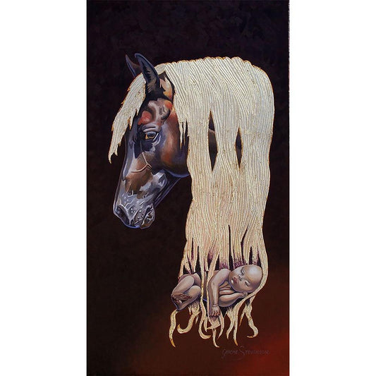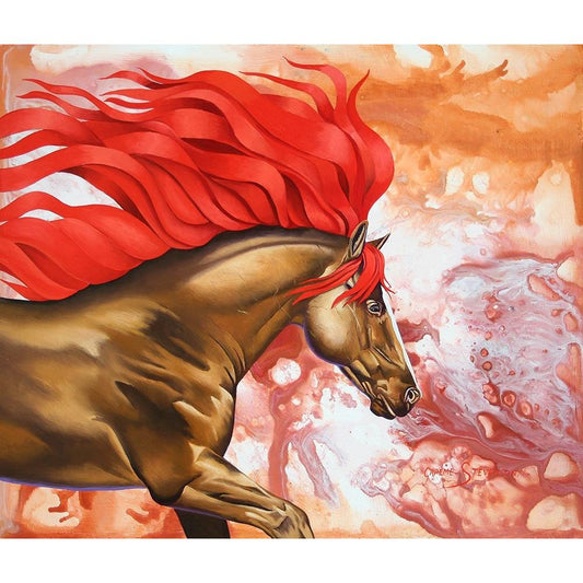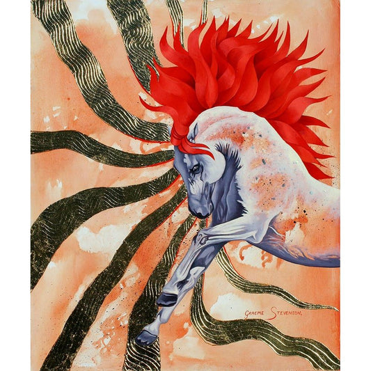 Blood Of The Stallion White Modern Wood Framed Art Print by Stevenson, Graeme