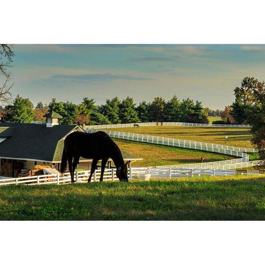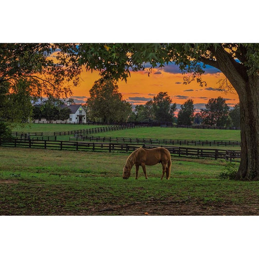 Horse Farm Sunset White Modern Wood Framed Art Print by Galloimages Online