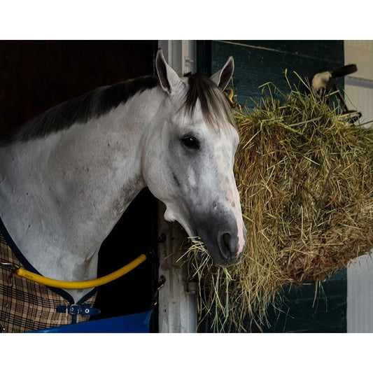 Horse Farm Barn (Inside And Out) White Modern Wood Framed Art Print by Galloimages Online