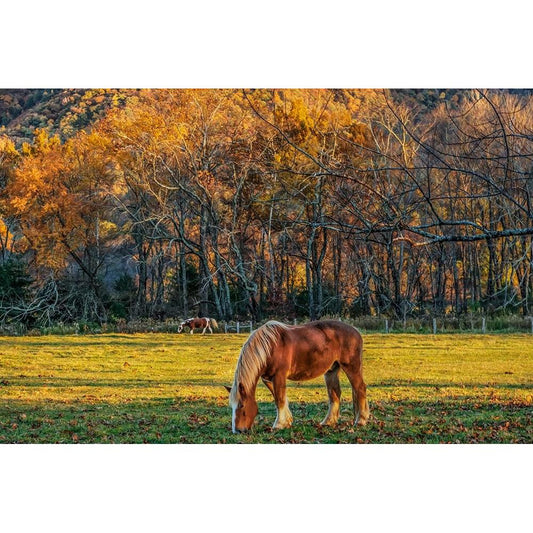 Cades Cove Horses At Sunset White Modern Wood Framed Art Print by Galloimages Online