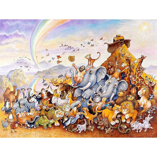 Noahs Happy Ending White Modern Wood Framed Art Print by Bell, Bill