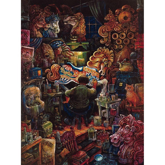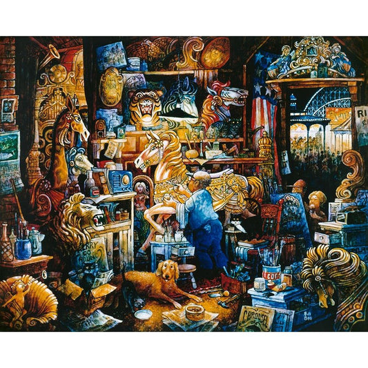 Carousel Man White Modern Wood Framed Art Print by Bell, Bill