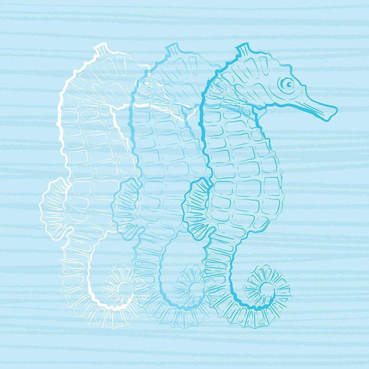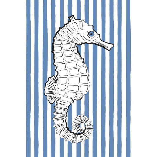 Blue Striped Sea Horse White Modern Wood Framed Art Print by Aesthete