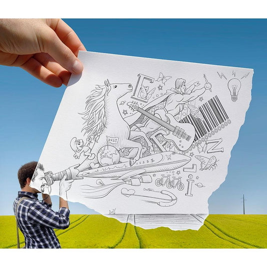 Pencil Vs Camera 30 - The Photographer White Modern Wood Framed Art Print by Heine, Ben