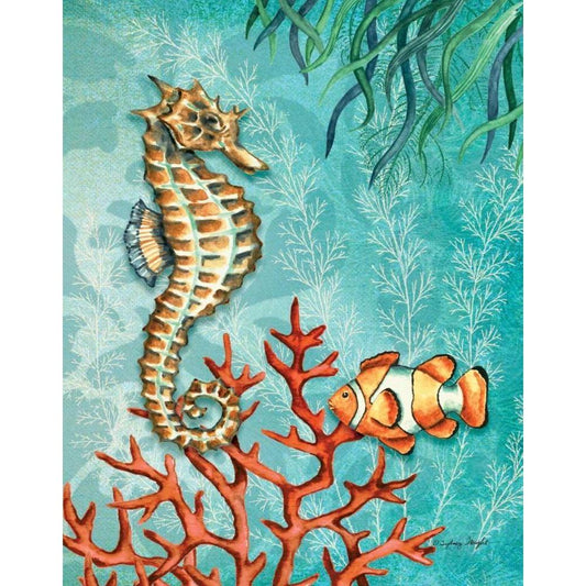 Sea Horse and Sea White Modern Wood Framed Art Print by Art Licensing Studio