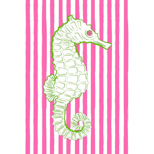 Pink Striped Sea Horse White Modern Wood Framed Art Print by Aesthete