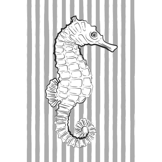 Grey Striped Sea Horse White Modern Wood Framed Art Print by Aesthete