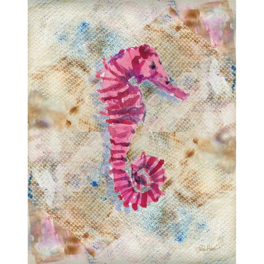 Pink Seahorse White Modern Wood Framed Art Print by Roberto, LuAnn