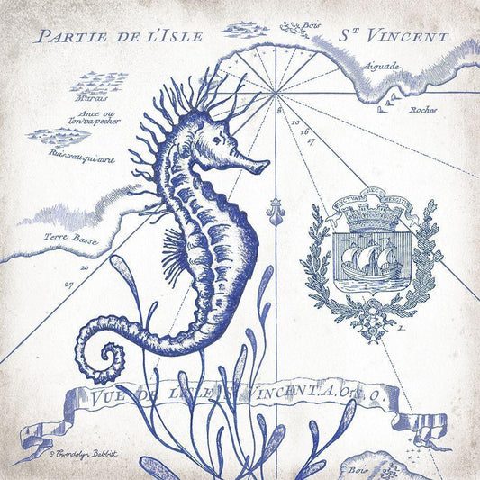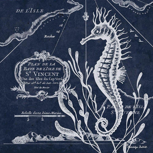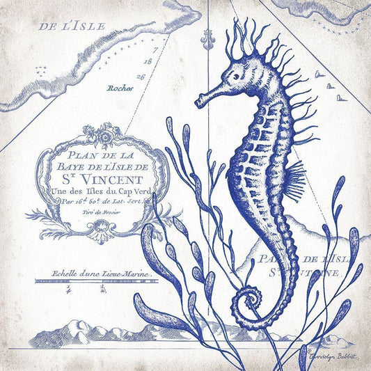 Seahorse on Blue I White Modern Wood Framed Art Print by Babbitt, Gwendolyn