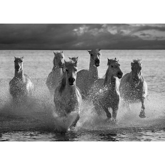 Horses Landing at the Beach Gold Ornate Wood Framed Art Print with Double Matting by Llovet, Jorge