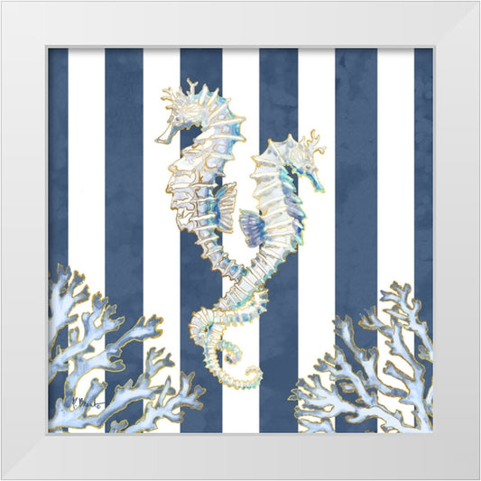 Lined Seahorse - Navy White Modern Wood Framed Art Print by Brent, Paul