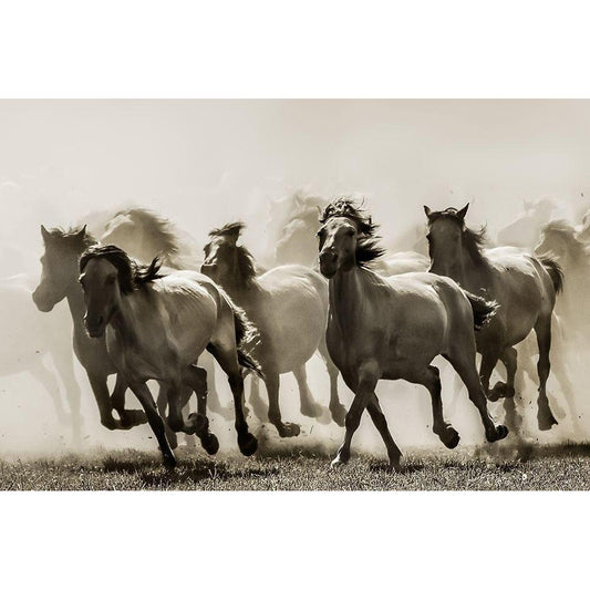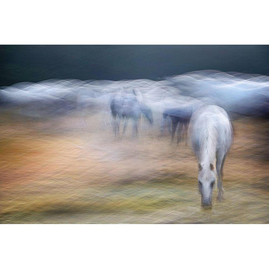 Horses Gold Ornate Wood Framed Art Print with Double Matting by Summer2016