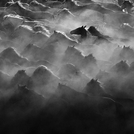 Horse Run Gold Ornate Wood Framed Art Print with Double Matting by Wong, Adam