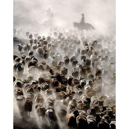 migration of horses Gold Ornate Wood Framed Art Print with Double Matting by Taskin, Huseyin