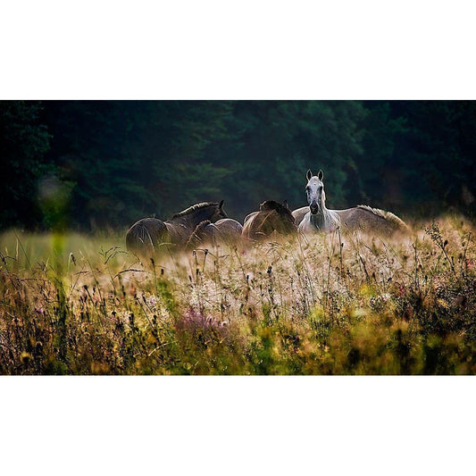 Horses hight key Gold Ornate Wood Framed Art Print with Double Matting by De Simone, Ciro