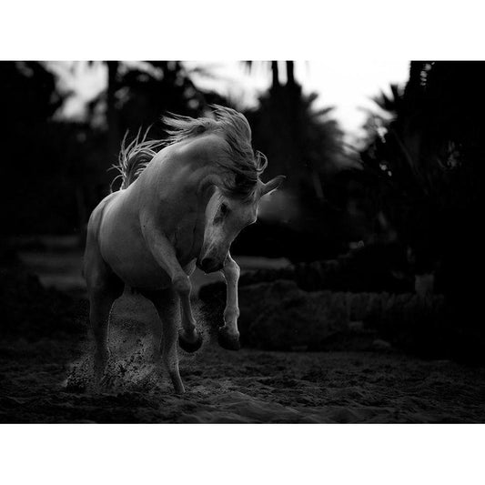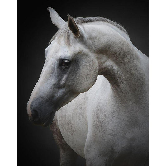 White horse Gold Ornate Wood Framed Art Print with Double Matting by Ünsal, Arif