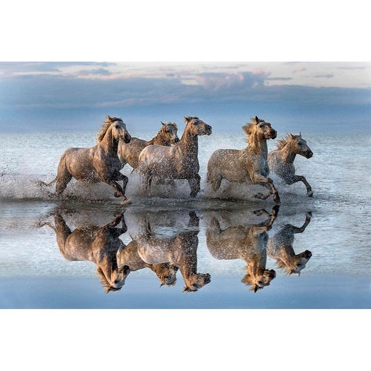 Horses and reflection Gold Ornate Wood Framed Art Print with Double Matting by Ortega, Xavier