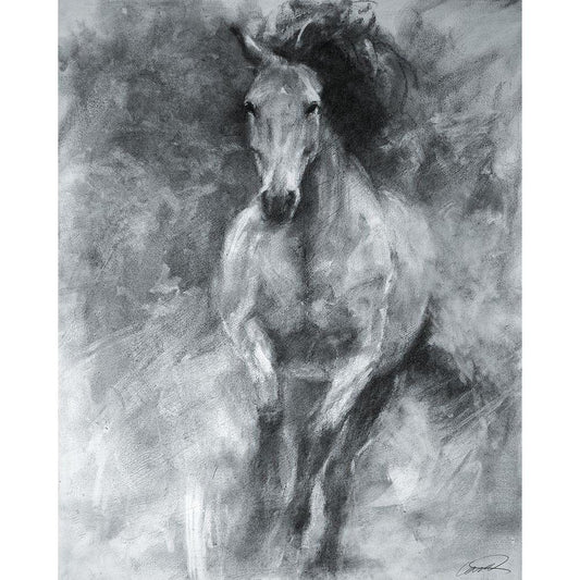 Gray Horse Gold Ornate Wood Framed Art Print with Double Matting by Orlov, Irena