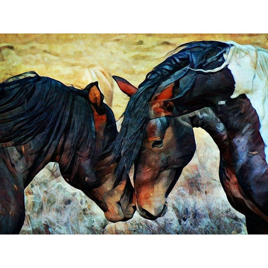 Wild Horses Lovers Caress Gold Ornate Wood Framed Art Print with Double Matting by Aldridge, Ashley