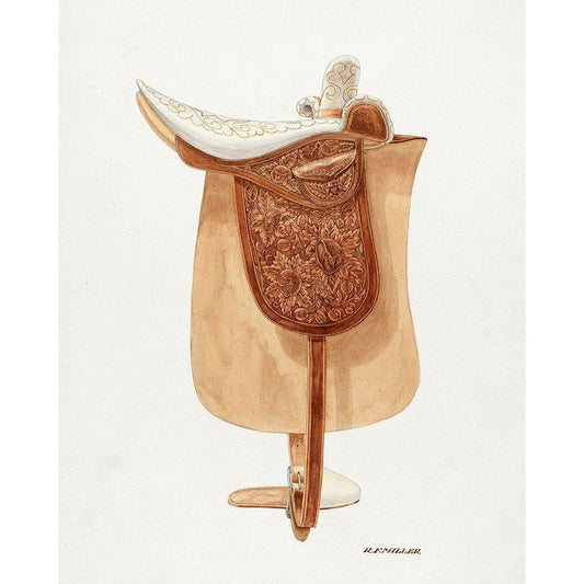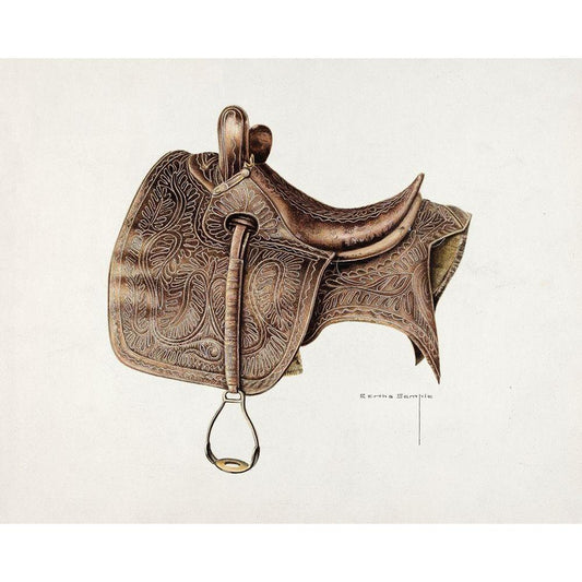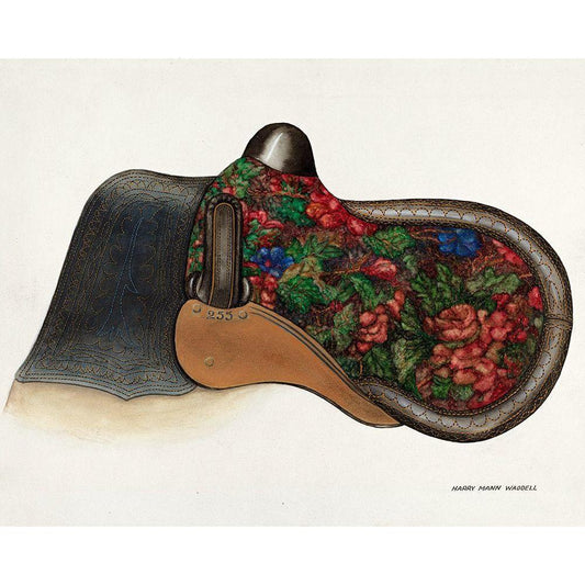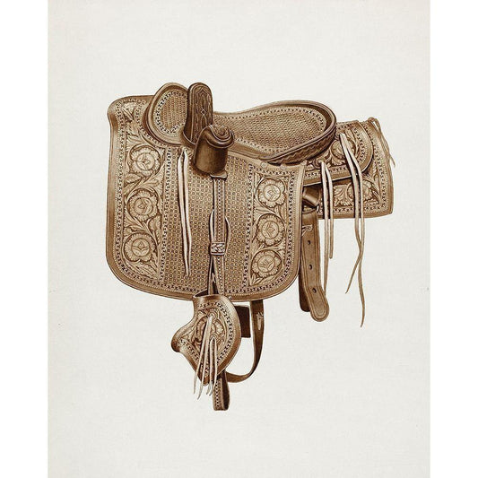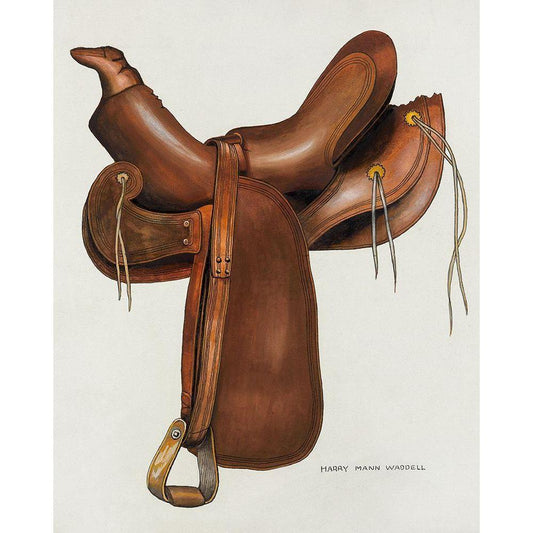 Saddle 1936 Gold Ornate Wood Framed Art Print with Double Matting by Waddell, Harry Man